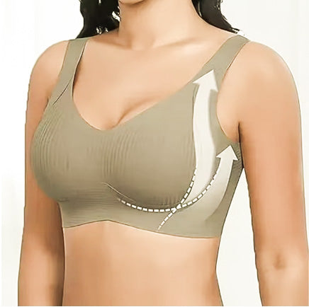 Nein. Das Design hebt die Brust leicht an, ohne sie einzuengen. Die verstellbaren Traeger sorgen fuer perfekten Halt.